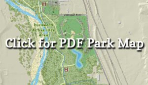 Downstream of the ponds, the Fountain Creek Nature Center serves as the focal point for learning about Fountain Creek, the watershed, and riparian ecology. Farther south, the Duckwood active play area consists of a 12-acre site with multi-purpose fields, picnic shelters, and a playground.